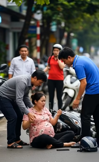 Đang đi giữa đường, bất ngờ chiếc xe máy phanh gấp tránh một ô tô vượt ẩu. Tôi bị hất mạnh, ngã quỵ xuống, nước ối vỡ tung trên nền đường loang lổ nước mưa. Người qua lại xôn xao, có người hét lên: