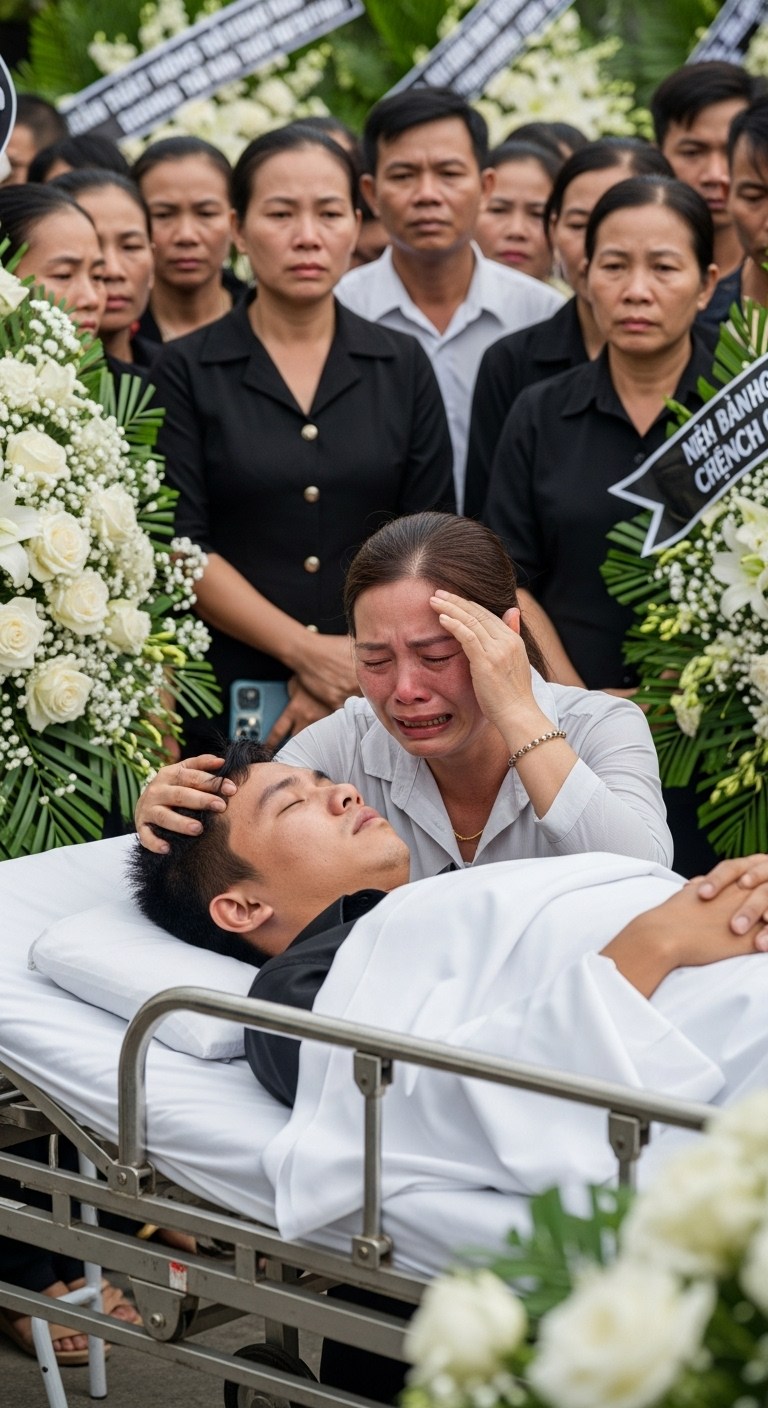 Tang lễ diễn ra trong nước mắt. Căn nhà nhỏ nghẹn ngào tiếng khóc. Ngọc không còn đủ sức gào thét, chỉ ngồi bất động bên di ảnh chồng, đôi mắt vô hồn. Người đàn ông mà cô vừa tiễn đi tối qua, người hứa sẽ về chăm cô và con, giờ chỉ còn là tấm hình đen trắng lặng lẽ.