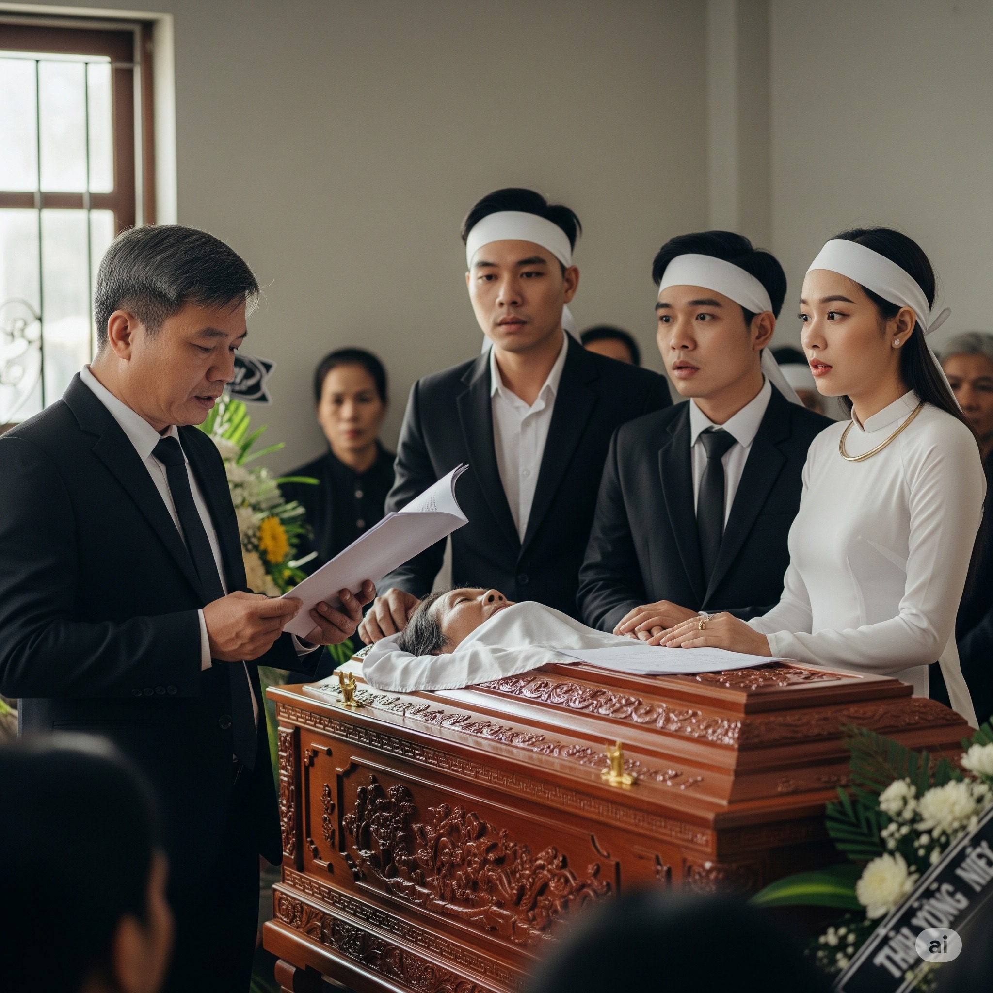 Tang lễ được tổ chức đơn giản theo di nguyện của bà. Ba người con đến, gương mặt buồn buồn – nhưng không hẳn vì mất mẹ, mà vì không biết có phải làm thêm thủ tục chuyển tên đất gì nữa không.
