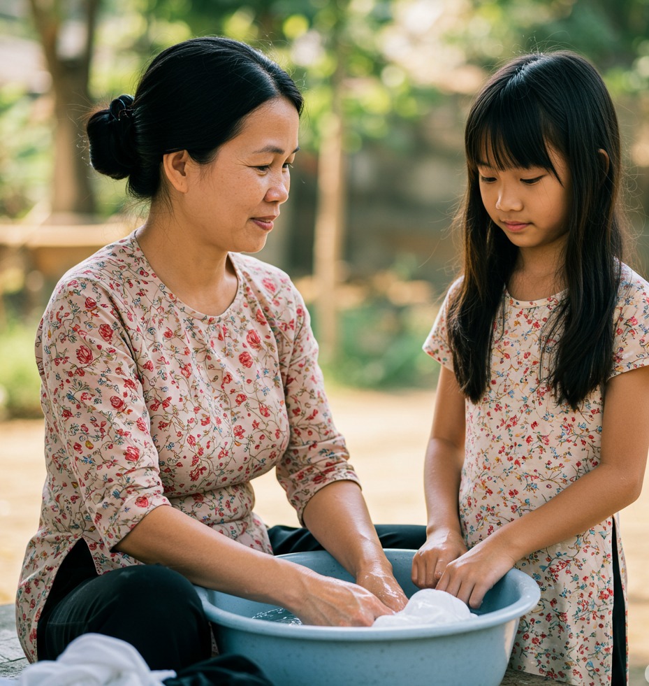 Đang giặt, tôi nghe tiếng bước chân nhẹ nhàng. Linh đứng sau lưng, giọng rụt rè: “Mẹ Ngọc, con muốn nói với mẹ một chuyện, nhưng mẹ đừng nói với bố nhé.” Tôi ngừng tay, quay lại nhìn con bé, mỉm cười: “Ừ, con nói đi, mẹ hứa.” Linh cúi đầu, thủ thỉ: “Con nghe bố nói chuyện điện thoại với ai đó, bố bảo… bố không yêu mẹ, bố chỉ ở với mẹ vì mẹ chăm con giỏi. Bố còn nói bố có người khác, và muốn bỏ mẹ.”