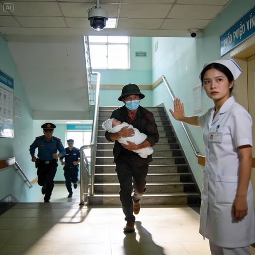 Nhưng Thảo nhìn thấy trên tay ông không có bình sữa, cũng không có thẻ người nhà treo cổ như quy định. Quan trọng hơn, chiếc nôi trong phòng Lan trống trơn. Thảo bước tới, giọng cứng lại: “Bác đặt bé xuống cho cháu kiểm tra. Không được bế ra khỏi khu này ban đêm.”