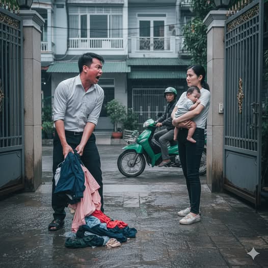 Lan khựng lại. Cô quay sang nhìn chồng, ánh mắt vốn luôn nhẫn nhịn nay bỗng dưng lạnh lẽo đến lạ. Cô không cãi, chỉ lẳng lặng kéo khóa túi xách, bế đứa con mới 8 tháng tuổi lên tay, rồi bước thẳng ra cửa không nói thêm một lời nào.