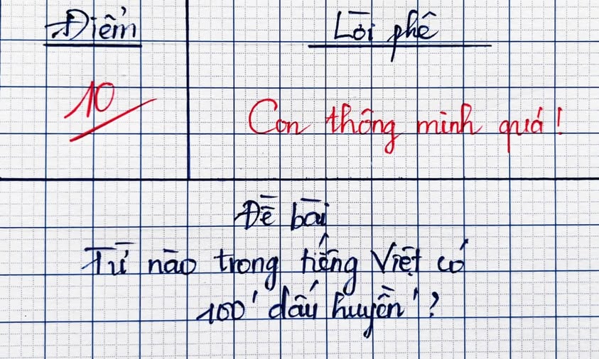 Một đáp án vừa chính xác, vừa thể hiện trí thông minh và khả năng tư duy ngôn ngữ tuyệt vời của trẻ. Cô giáo đã không ngần ngại ghi lời phê: