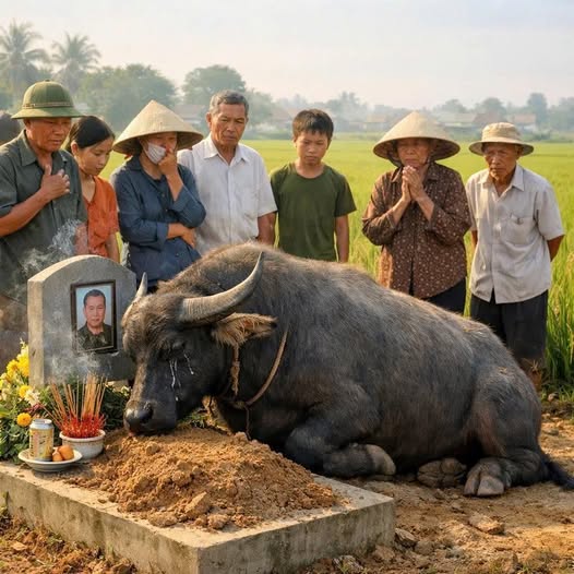 “Bờm ơi… mày không ăn uống gì cả sao con?” Một người đàn ông lớn tuổi nhẹ giọng gọi, đoạn đặt bó cỏ non bên cạnh nhưng `Chú trâu Bờm` không hề có phản ứng. Nó chỉ nằm đó, đôi mắt đờ đẫn nhìn về phía tấm bia mộ lạnh lẽo, như đang cố gắng thấu hiểu một điều gì đó vĩnh viễn không thể đổi thay.