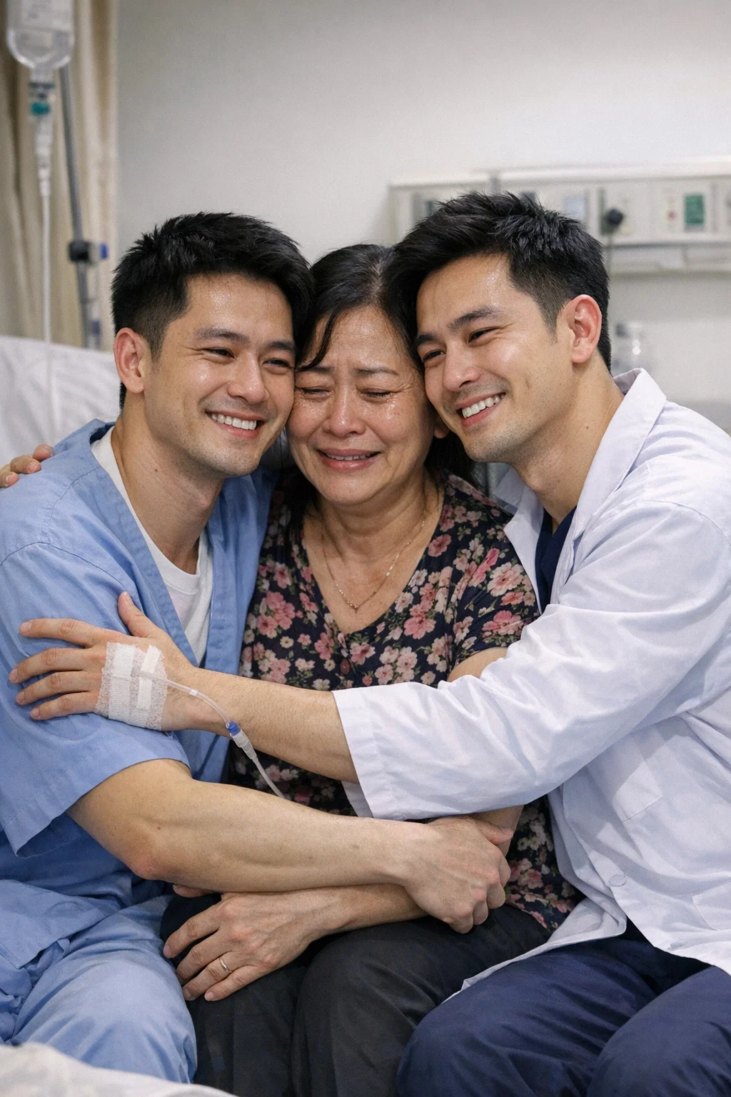 Bà Lan ôm chầm lấy cả hai đứa con trai. 27 năm chờ đợi, 27 năm linh cảm của người mẹ không hề sai. Đêm nay, tại phòng bệnh này, gia đình họ lại có một đêm mất ngủ, nhưng không phải vì đau đớn hay chia ly, mà vì hạnh phúc đoàn tụ quá lớn lao.