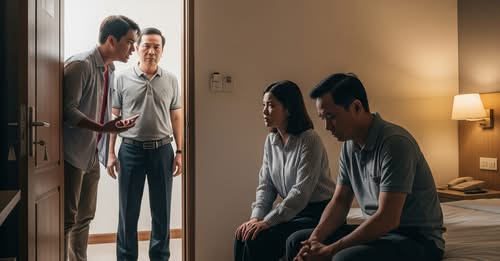 Tôi không muốn một mình lao vào rồi bị cho là đa nghi, nên lén gọi cả bố ruột và bố vợ cùng đi bắt quả tang, cho ra nhẽ một lần. Hai ông ban đầu gạt đi, bảo “đàn bà con gái nhiều khi nhắn tin tầm phào thôi”, nhưng thấy tôi quyết liệt, cả hai cuối cùng cũng gật đầu.