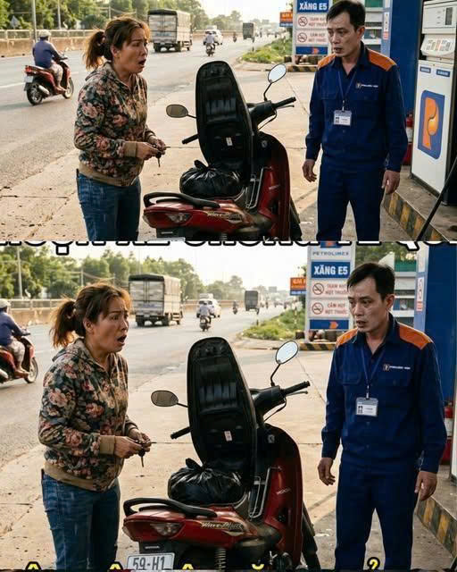 Nước mắt tôi trào ra. Tay run đến mức không cầm nổi điện thoại. Anh nhân viên cây xăng thấy vậy cũng thương, giọng nhỏ lại: “Chị bình tĩnh… chị gọi công an đi, không thì chị sẽ bị liên lụy đấy.”