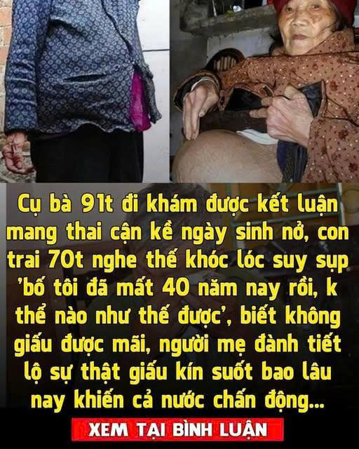 Cụ bà 91 t/uổi đi khám thì được kết luận mang th/a/i cận kề ngày s/i/nh n/ở, con trai 70 t/uổi nghe thế thì khóc lóc suy sụp ‘bố tôi đã m/ấ/t hơn 40 năm nay rồi, không thể nào như thế được’, biết không giấu được mãi, người mẹ đành t/iế/t l/ộ sự thật giấu kín suốt bao lâu nay khiến cả nước chấn động