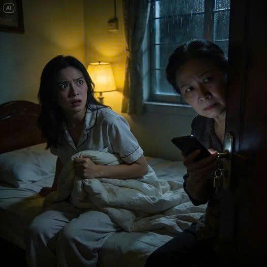Bà liền nói nhỏ: “Mẹ nghe tiếng động ngoài sân lúc nãy. Nhỡ có trộm thì sao? Con nằm với mẹ hay mẹ nằm với con cũng được.”