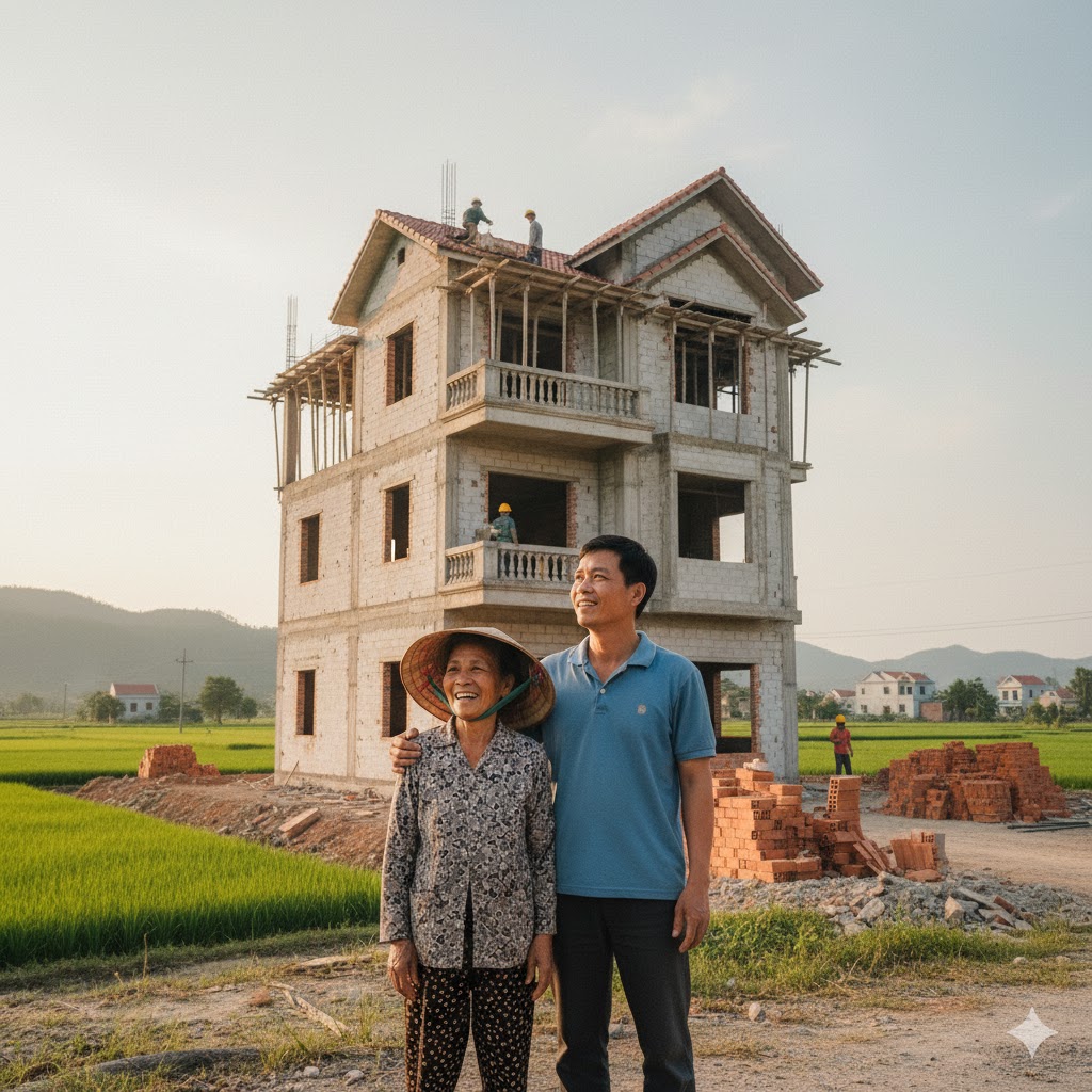Khi đã có vợ con, tôi nghĩ: “Mình làm ăn bao năm, giờ cũng nên dựng ngôi nhà khang trang ở quê để báo hiếu mẹ, để người ta nhìn vào còn nể mặt.” Ở quê tôi, ai đi làm ăn xa mà chưa có nhà to thì vẫn bị xem là “chưa nên người”. Thế là tôi quyết tâm xây.