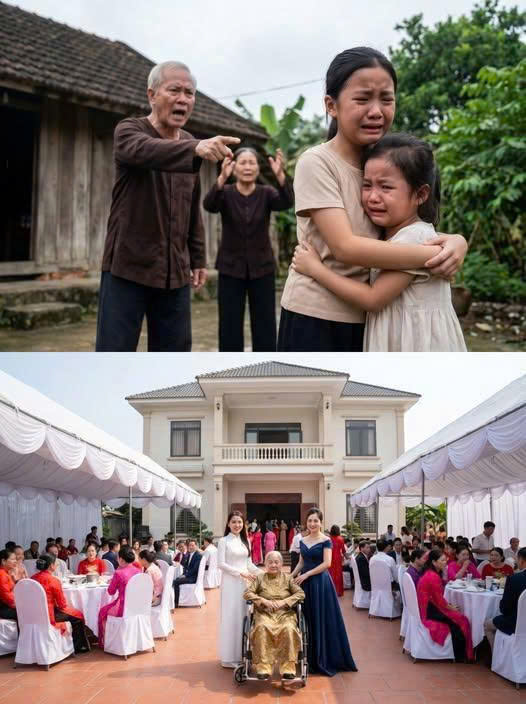Đúng lúc tiệc đang vui, bỗng nhiên có tiếng ồn ào ngoài cổng. Ông bà nội tôi – giờ đã già yếu, chống gậy tập tễnh – chen qua đám đông đi vào. Theo sau là mấy người cô chú (những người năm xưa cũng hùa vào đuổi chúng tôi đi).